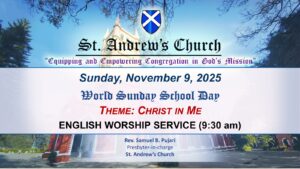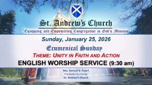 Our life and work at St. Andrew’s, true to the life of the Patron Saint, is a ministry carried out with humility, sincerity and commitment, with no personal glory to any human being but only to God. We celebrate meeting together and encourage one another (Hebrews 10:25).