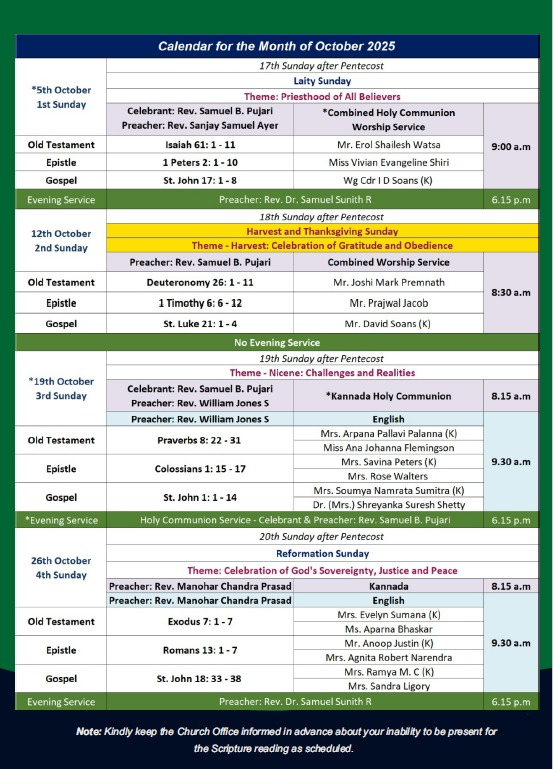 The idea of the People of God strives us to be a community that welcomes and belongs. A community that celebrates hospitality and generosity, that experiences and shares the embrace of God without any distinction or prejudice. Andrew’s is home of People from diverse traditions, cultures, languages and ethnic traditions. The idea of a family or a home away from home is something dear to the Andrew’s family, and sharing quality time and developing friendships are celebrated with a sense of joy. Having conversations and sharing ideas over Coffee under the Tamarind Tree are now part of the legacy of the church. We are intentional about sharing the embrace of God to everyone who comes in and our sanctuary is not only a spiritual space, but an eco-sanctuary that celebrates God’s creation. We are conscious about sustaining the resources provided by God, and our Rain Water Harvesting Project and Solar Powered Lighting are simple examples of our commitment to sustain the present for the future. We are also conscious that more needs to be done. Our neighbours are the esteemed members of the Armed Forces, whose selfless service we value and cherish. These are ideas that help us in realising our overarching goal of “Equipping Congregations in God’s Mission,” a goal that is set in the context of participatory process of collective thinking, participation and sharing of the gifts and talents given by God. The members of the Pastorate Committee numbering twelve provide the vital space for this process and they in turn provide leadership to several members who are involved in Sub-committees and Teams. The several ministry initiatives cover all age groups and it is our conviction that each one is precious in the sight of God and can be equipped to become partners in the mission of God. Our ministry-reach includes Children, Teens, Young Couples, Women, Elderly and Professionals. Our care extends to people who experience loss with bereavement support. More involvement means more engagement and more engagement means more motivation, and more motivation means more impact. Impacting persons and communities keeps driving us in doing what we are doing for God’s glory. An effective Staff Team, with key management principles and performance indicators, add value to the continuing work entrusted to us.