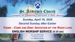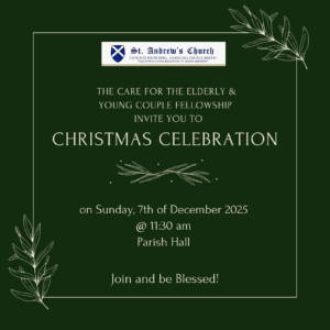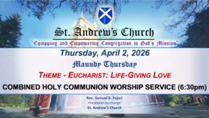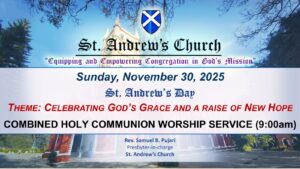 Our life and work at St. Andrew’s, true to the life of the Patron Saint, is a ministry carried out with humility, sincerity and commitment, with no personal glory to any human being but only to God. We celebrate meeting together and encourage one another (Hebrews 10:25).