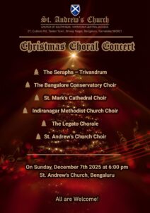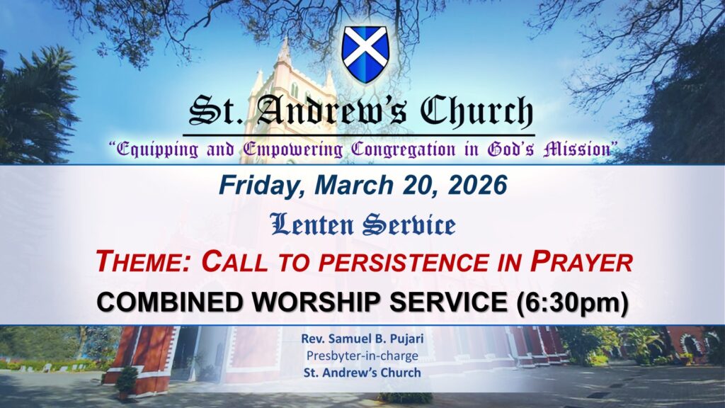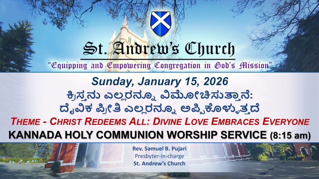 The idea of welcoming and belonging drives us at St. Andrew’s Bangalore, and we are delighted for choosing to visit our website. The unassuming and joyful testimony of Andrew, the first Apostle called by our Lord, continues to inspire our existence for over 150 years. The lives of the faithful and their good work continue to inspire us to bring it to completion in our own time and in our own context. We want to invite you warmly to participate in the four focus areas based on biblical foundations that we consider vital for our journey as a community of faith: Worship, Fellowship, Discipleship and Service.
