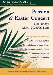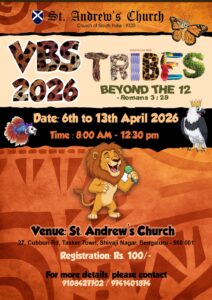 The idea of welcoming and belonging drives us at St. Andrew’s Bangalore, and we are delighted for choosing to visit our website. The unassuming and joyful testimony of Andrew, the first Apostle called by our Lord, continues to inspire our existence for over 150 years. The lives of the faithful and their good work continue to inspire us to bring it to completion in our own time and in our own context. We want to invite you warmly to participate in the four focus areas based on biblical foundations that we consider vital for our journey as a community of faith: Worship, Fellowship, Discipleship and Service.