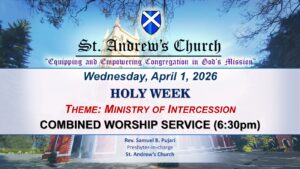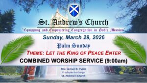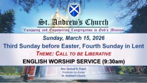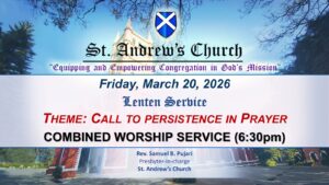St. Andrew’s Church is committed to Participatory Christian Life in all its thinking, planning and action with a goal of Reconciliation and Transformation.